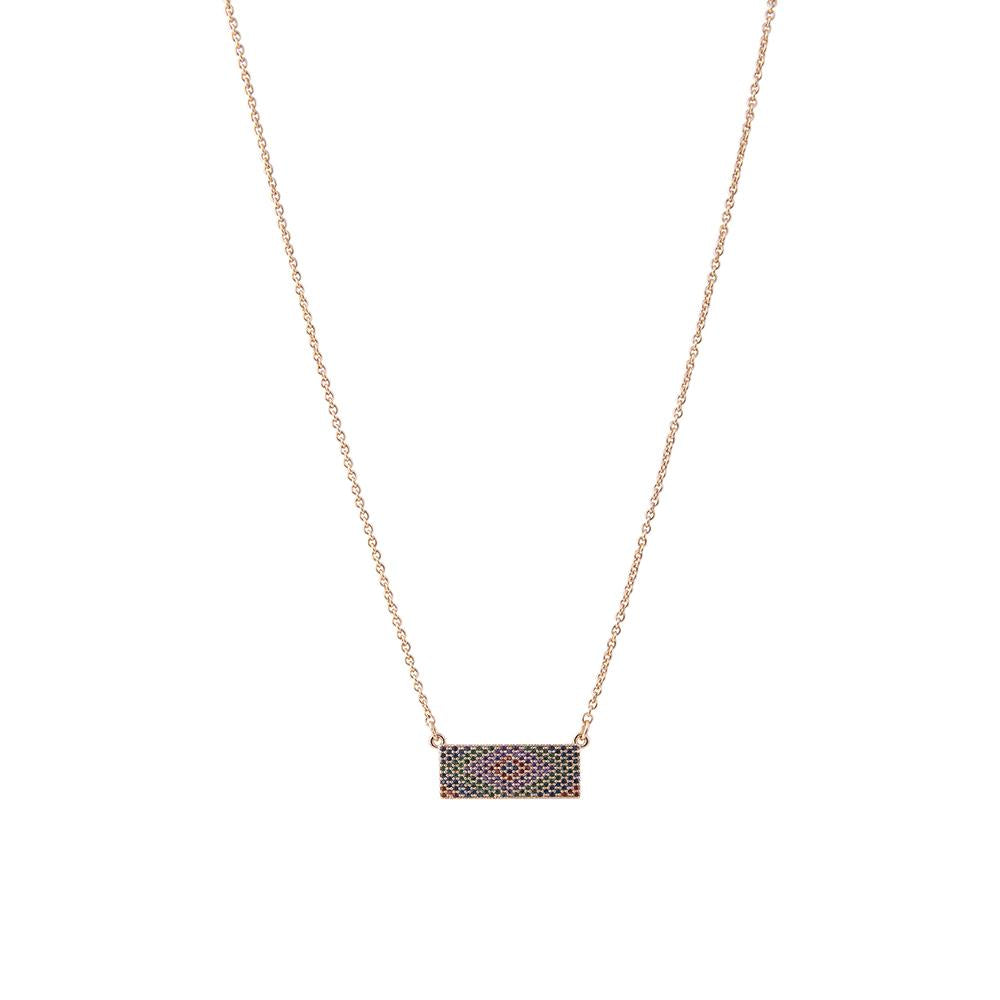 Gold plated necklace encrusted with multi coloured CZ stones in geometric micro pavé setting.