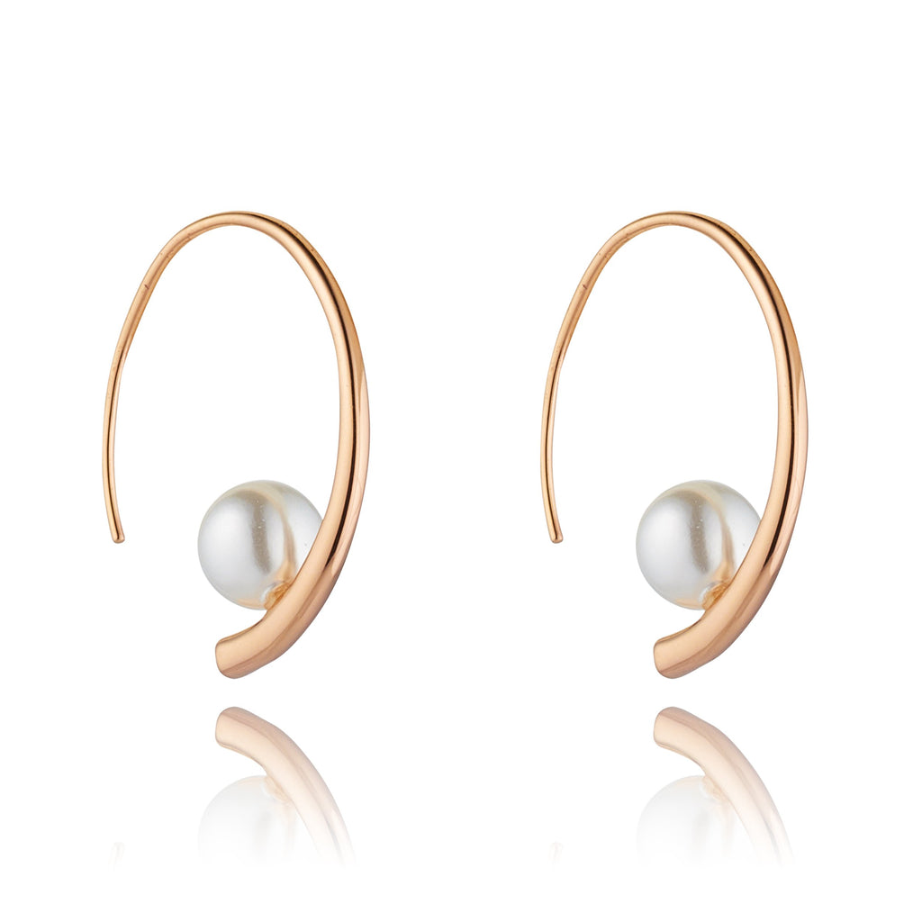 | Pretty hoop style rose gold plated earrings embellished with faux cream pearl. |