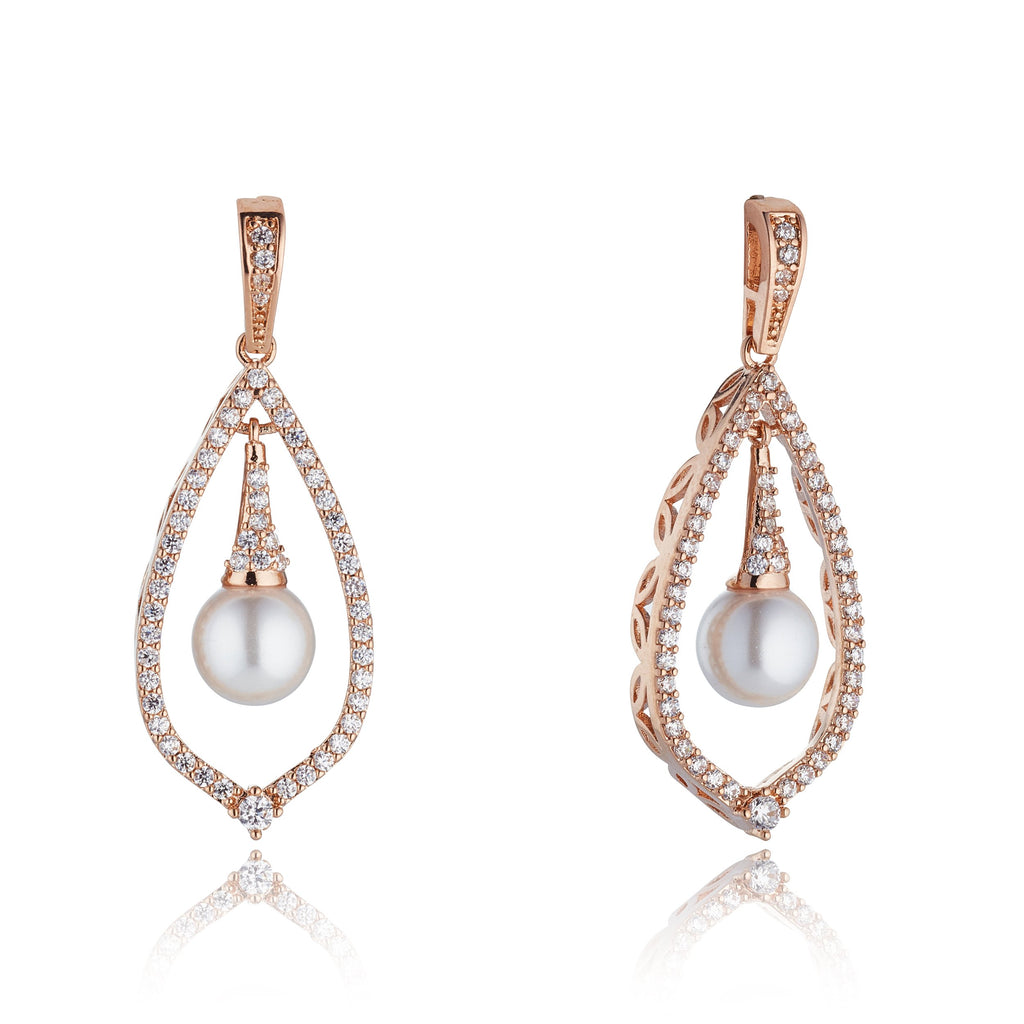 | Elegant tear drop shape with inner drop of faux pearl. Stud fastening. Length 3.5cm. |