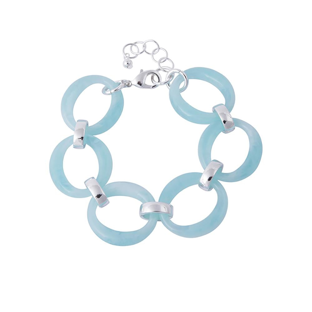 Elegant turquoise resin bracelet with silver plated links. Lobster claw fastening.