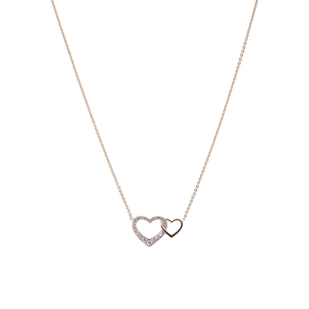 Gold plated necklace with interlinked hearts embellished with CZ stones in micro pavé setting. Length 16" + 2" extension.