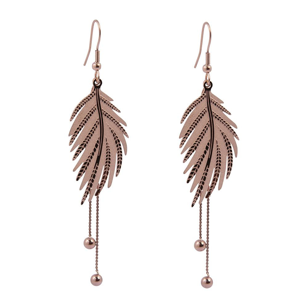 Contemporary style earrings with beautiful leaf drop. Fish hook fastening. Rose gold plating. Length 8 cm.