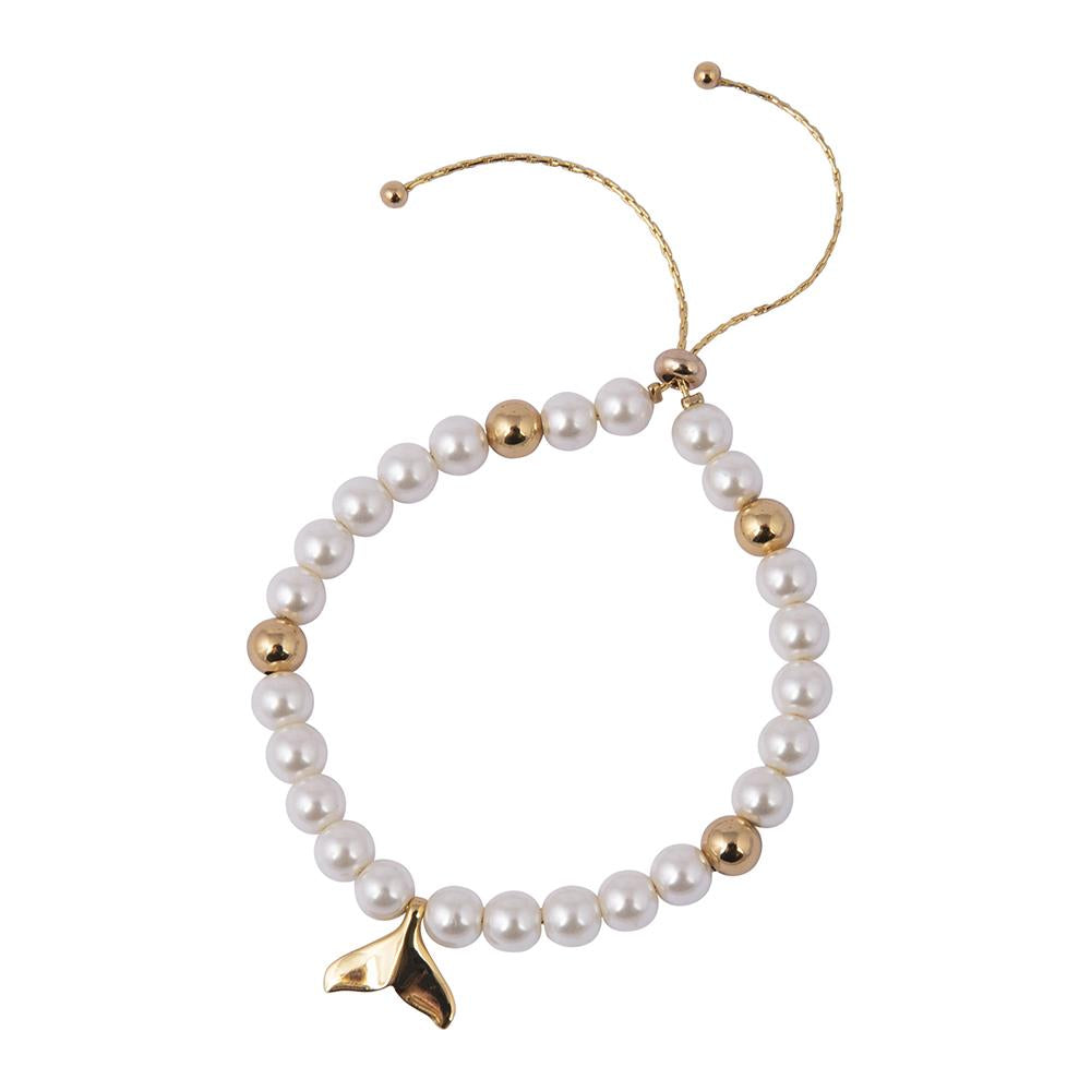 Faux pearl bracelet embellished with fish tail charm. Slider fastening.