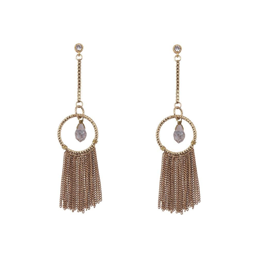 Beautiful gold & rose gold tassel earrings embellished with Czech crystal. Length 8cm. Stud fastening.