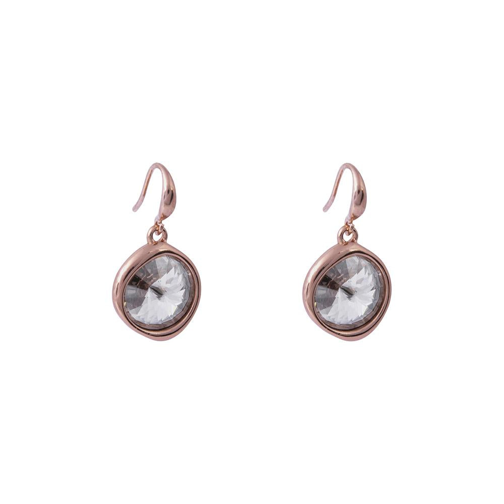 Elegant earrings with beautiful Swarovski Silver Shade stone in distinctive irregular setting in rose gold. Fish hook fastening.
