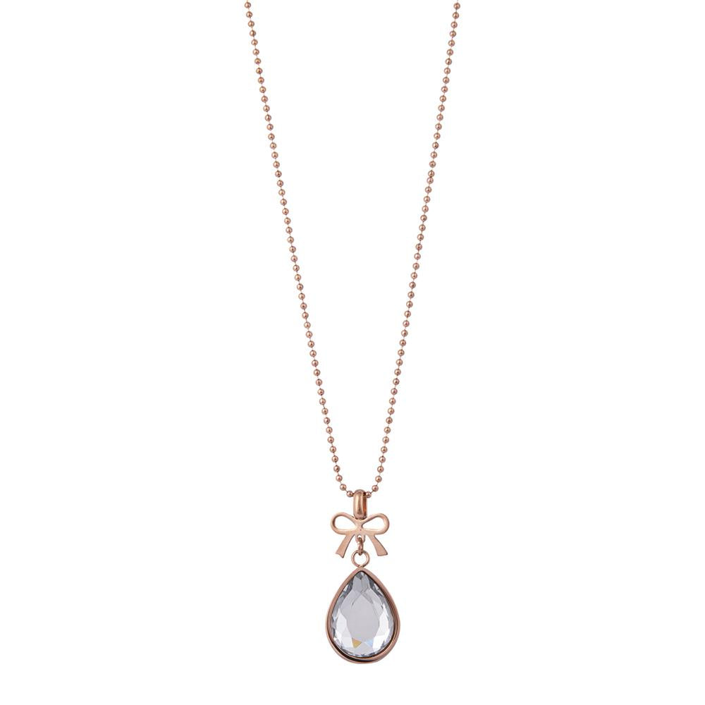 Bow & teardrop necklace embellished with crystal. Length 16.5" + 2" extension.