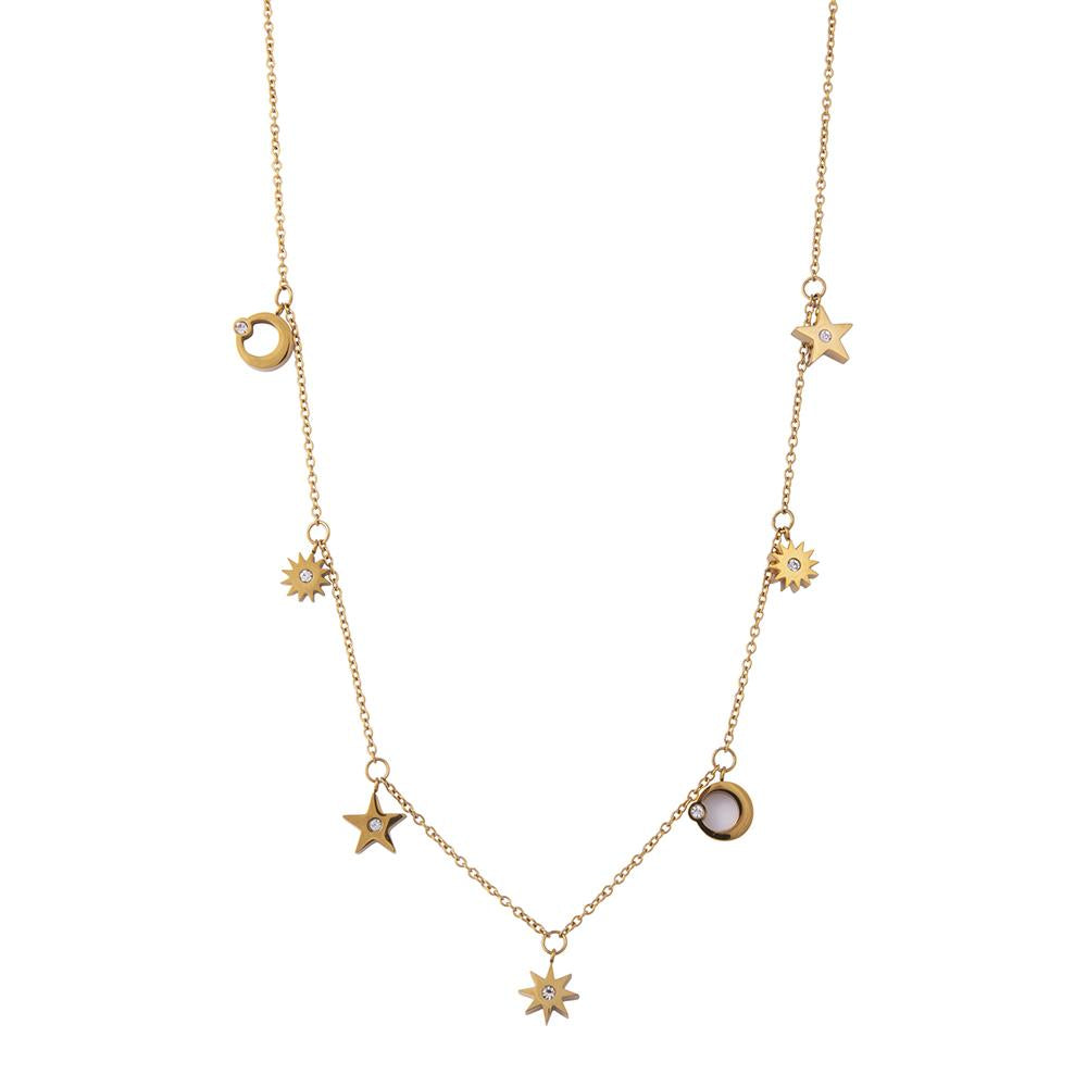 Beautiful gold plated necklace embellished with star & circle charms. Length 17" + 1.5 extension.