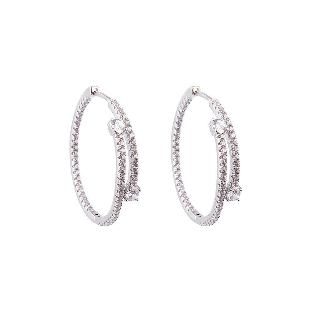 Glamorous hoops encrusted with CZ stones. Rhodium plating. Diameter 3cm. Stud fastening.