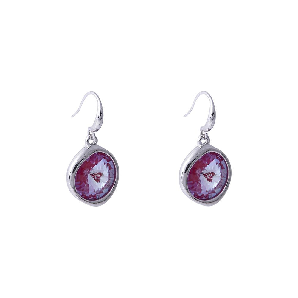 Elegant earrings with beautiful Swarovski Lotus Pink Delite stone in distinctive irregular setting in rhodium. Fish hook fastening.